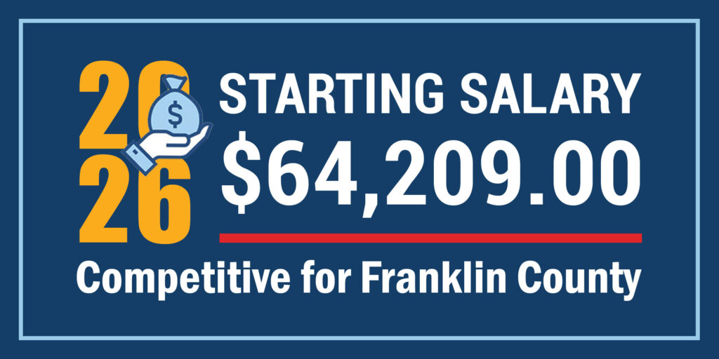Pay is competitive for Franklin County, with an increase to $66,539.20 upon successful completion of the police academy.